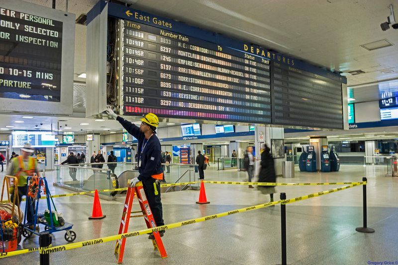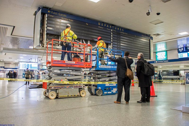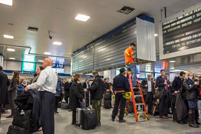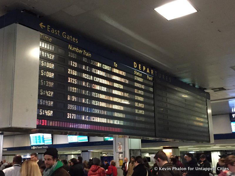 The 10 foot tall board was disconnected last Monday – below is a photo of the last trains to ever be displayed. Untapped Cities tour guide Justin Rivers, who wrote the off-Broadway play The Eternal Space about the demolition of the original Penn Station and gives our popular Remnants of Penn Station tours notes, “Appropriately, some of the last trains to ever grace the board were delayed,” (due to downed power lines from a storm).