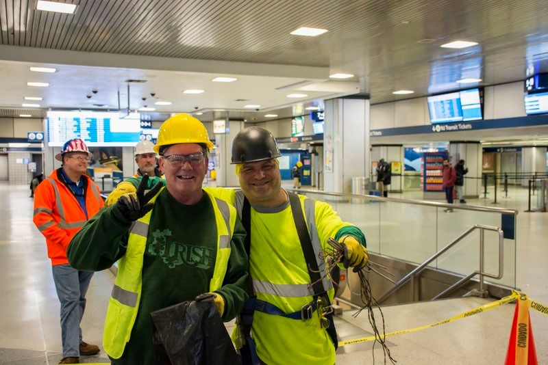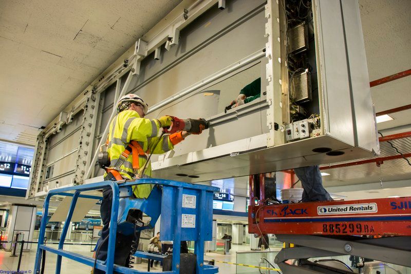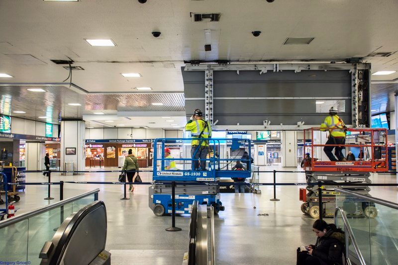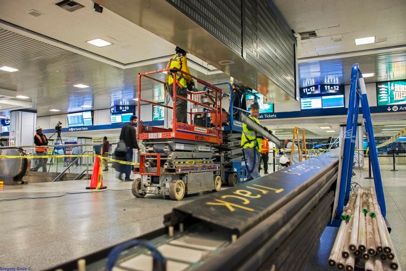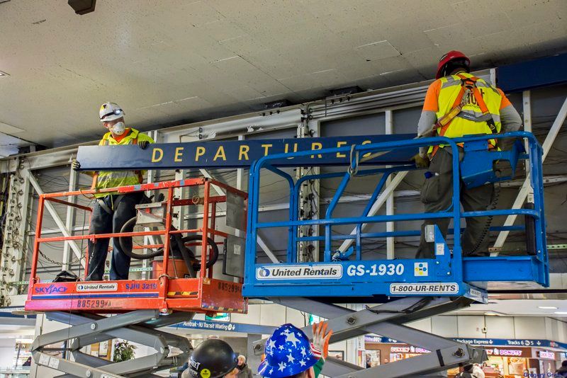 Here is a step by step series of photographs documenting the departure sign coming down: