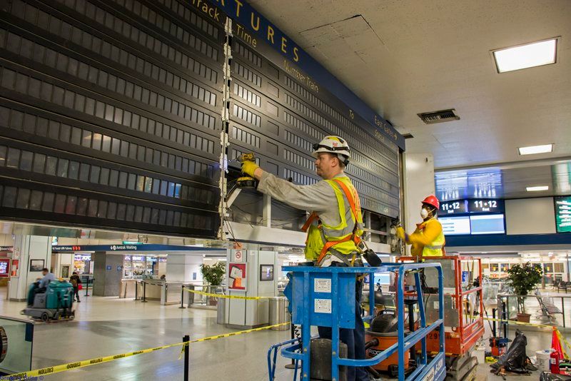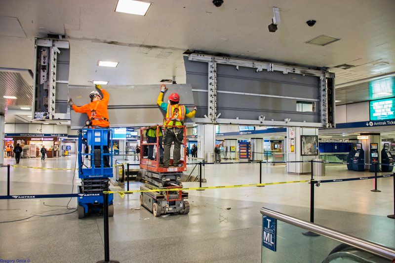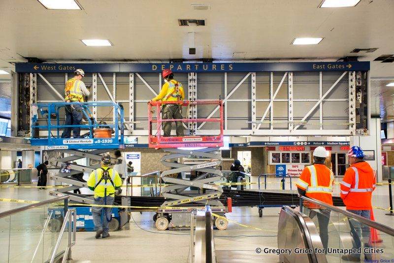 Gregory Grice, a photographer for Untapped Cities, documented the demolition of Penn Station’s Amtrak departure board last week over the course of four evenings. Although this sign didn’t have the flapping sound of the Solari board that it replaced in 2000, it nonetheless had a rather lo-fi analog look which instantly became an object of nostalgia once the removal was announced. The sign has been replaced by smaller digital LCD screens.