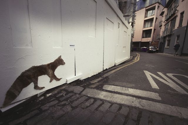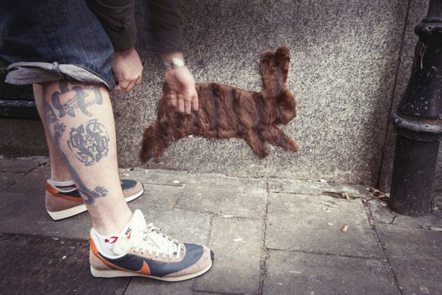 PETA has been leveraging the power of street art recently, particularly in the United Kingdom. After chicken feet starting appearing all over London by New York City street artist Dan Witz, the latest is a guerrilla installation of donated furs, adapted into animal shapes around Dublin. This installation is by street artist Solus using fur coats from those who have changed their mind about the fur industry. Accompanying each piece is a sticker that leads to BanFurFarms.net, where they can join a growing list of over 30,000 people calling on Ireland’s Minister for Agriculture, Food and the Marine to ban fur farms. Says Solus, “Re-shaping the fur coats into animals is a way to remind us of the life it that once inhabited those garments.”