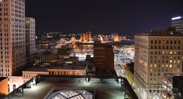 Despite its good 19th-century bones, by the end of the 20th Cincinnati became a virtual architectural dig of bad planning ideas. Like most American cities after World War II, it had faced an enormous set of interlocking problems categorized as the urban crisis: declining jobs and tax base, middle-class flight, deteriorating infrastructure, racial conflicts, rising crime, redlining, etc. But in deciding to try to attract back those who had fled, it opted for the wrong tactics. Suburbanites loved their cars, so Cincinnati downgraded public transit while putting commuter traffic efficiency at the top of its priorities. It cooperated with federal highway designs that ripped a spaghetti network of highways throughout the city. It widened streets to handle more cars, converted its major arteries to one way, and built huge parking lots to accommodate drivers.