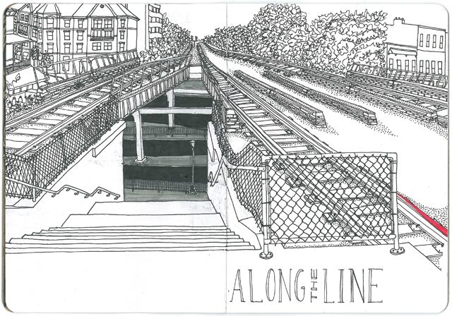 You can check out the rest of my 2012 Sketchbook Project ‘Along the Line’ here. And don’t forget if you want to see me doodle in person, or just enjoy a night of great music and art you should check out the ‘A Book Called Forever’ pre-release exhibit.