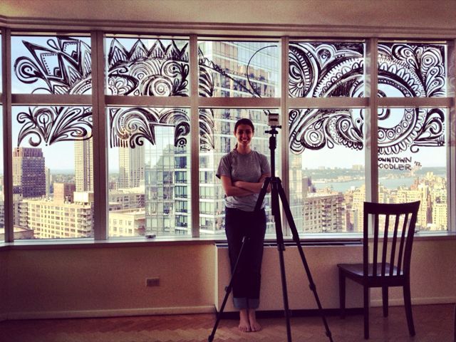 I had been to the Untapped Cities Headquarters a few times over the past year, But it wasn’t until the middle of the Untapped Cities Staff summer party that it hit me, “the windows would be perfect for me to doodle on!” After some planning, the day came for me to “doodle in the sky”. We captured this timelapse video of my hour and a half doodle session on the windows with jaw dropping views looking West and Uptown along Amsterdam.