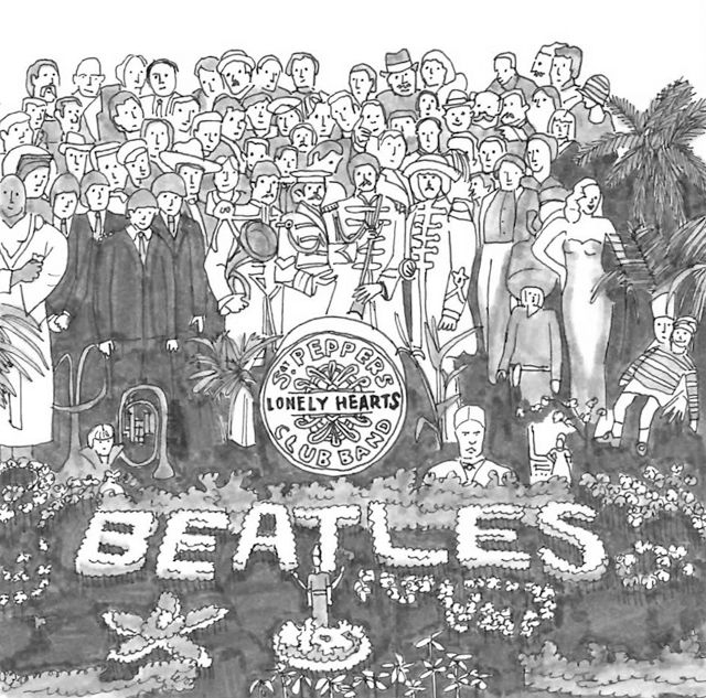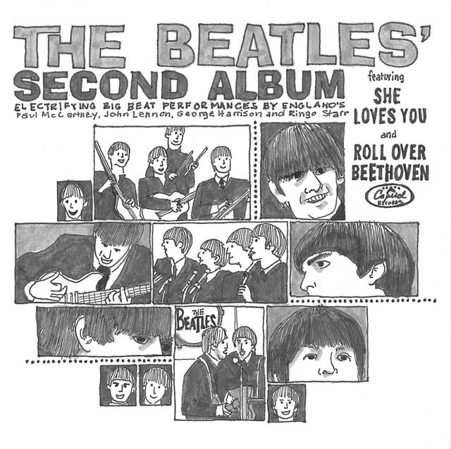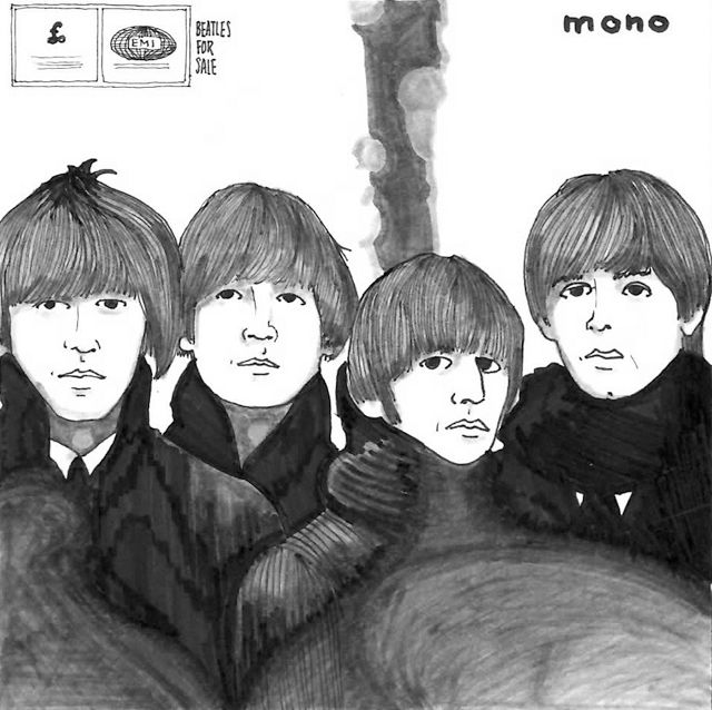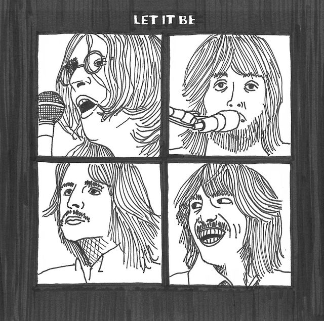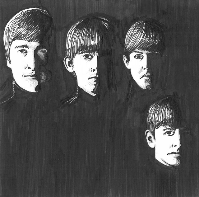 George Harrison died a day after my birthday in 2001, and John Lennon only 10 days. So in honor of their memory, I want to share the Beatles album covers I drew, in a cartoon style, for my mom (a huge Beatles fan as well) for Christmas a few years ago. Below are a few of my favorites, you can see them all on my Downtown Doodler facebook page.