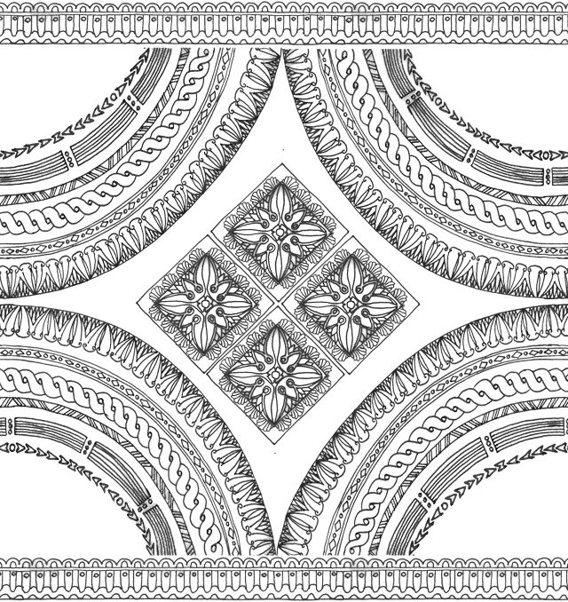 This ArchiDoodle includes nine different patterns working together fairly harmoniously and echoing all the different sized arches found in the ornate lobby.