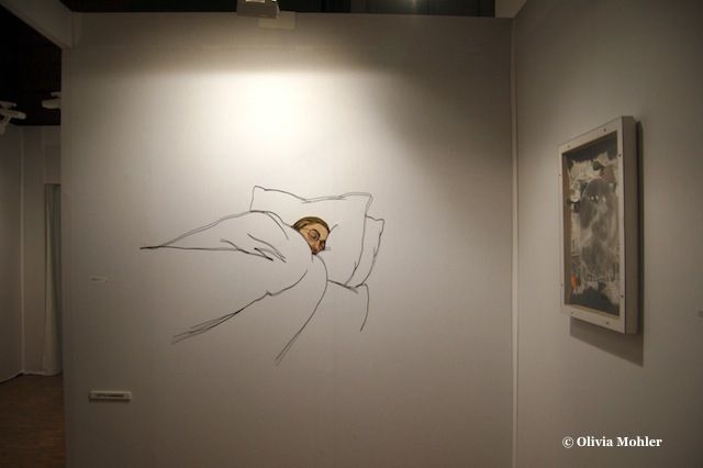 It’s easy to understand why this fair has been receiving such incredible press; the combination of the pieces, the spaces they are displayed in and the general atmosphere creates an ambiance sure to convince any remaining skeptics that drawing is in its own right an equal art form to painting and sculpture. Walking around the salon I found myself stopping dead in my tracks often awed, shocked, or even amused by the works. There were so many works that I longed to stare at for hours or even buy. From detailed large-scale charcoal drawings, to drawings done in ballpoint pen that looked more like photographs than anything else or even a series of Playmobile heads so realistically portrayed that I could identify which ones I had grown up playing with. Despite the flurry of red stickers symbolizing sold works, the atmosphere stayed casual and welcoming to people of all ages or budgets.