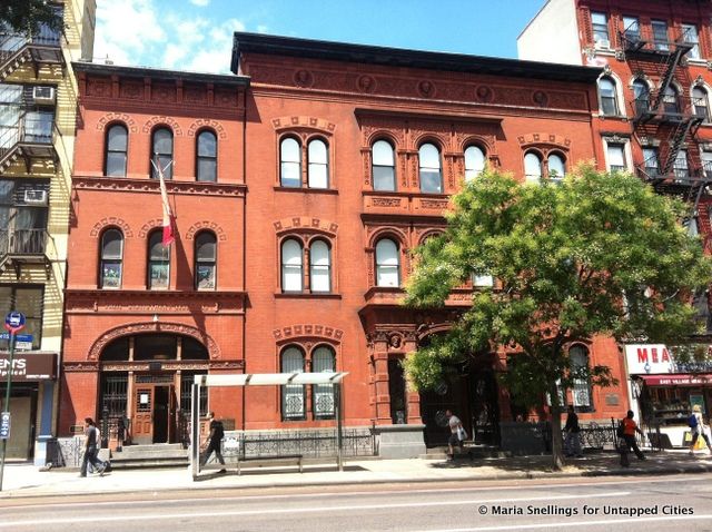 Just across the street from the Astor Public Library, the Astor Place Riot took place in 1854, breaking out in front of an opera house. The theater was never able to live down its negative association with the riot and its interior was demolished in 1853. In 1890 the entire neoclassical building was demolished and replaced by the 11-story structure below. Â The building was eventually turned over to the New York Mercantile Library Association, which is now The Center For Fiction.