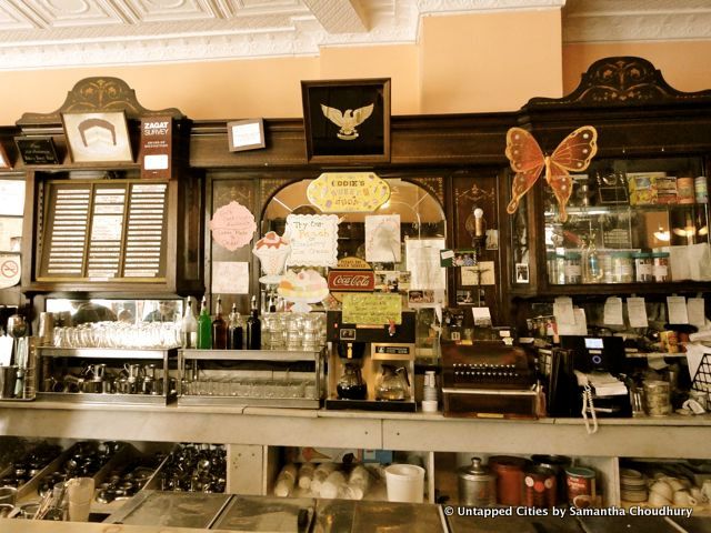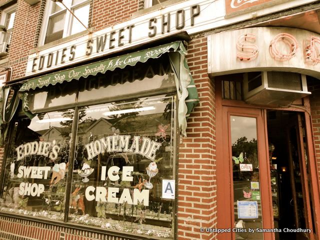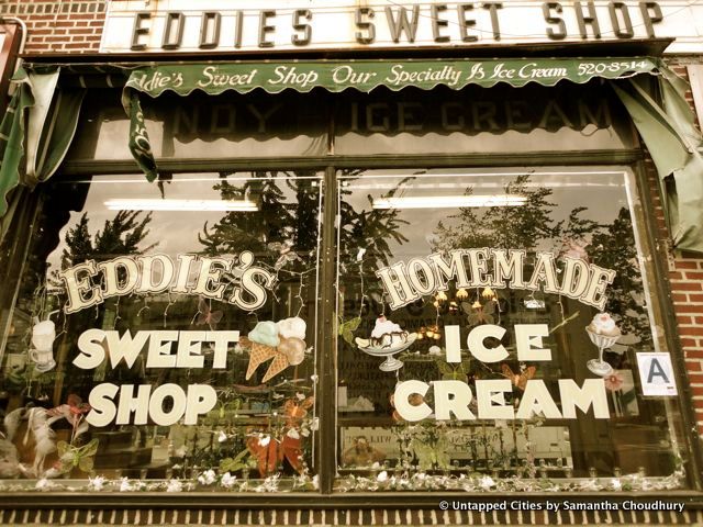 Well you don’t have to go back in time to experience this, as a little gem remnant of the good ol’ days exists to this day in Forest Hills, Queens. Eddie’s Sweet Shop, established in 1909, is still a local hangout and favorite and when you go inside it really is like stepping back in time.