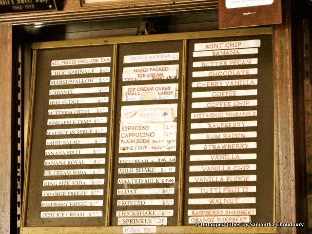 The menu has all the old time favourites, from banana splits, floats, thick shakes, egg creams and sodas with all the ice cream and whipped cream still handmade.