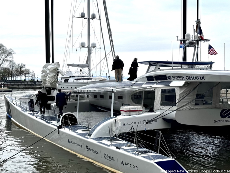 Energy Observer, the world’s first self-sufficient, zero-emission sailing laboratory, has covered over 62,000 nautical miles on its seven-year journey across the globe. Stopping at more than 40 countries, the experimental vessel is testing and spreading the word about new and innovative solutions for low-carbon energy production. On board, solar, wind, and hydrogen power sources are put to the test on the open seas to learn how they can be applied to life on land. New York City is one of the last stops for Energy Observer before retiring at the end of 2024. Untapped New York got to tour the vessel and see its inner workings while docked at Brookfield Place.