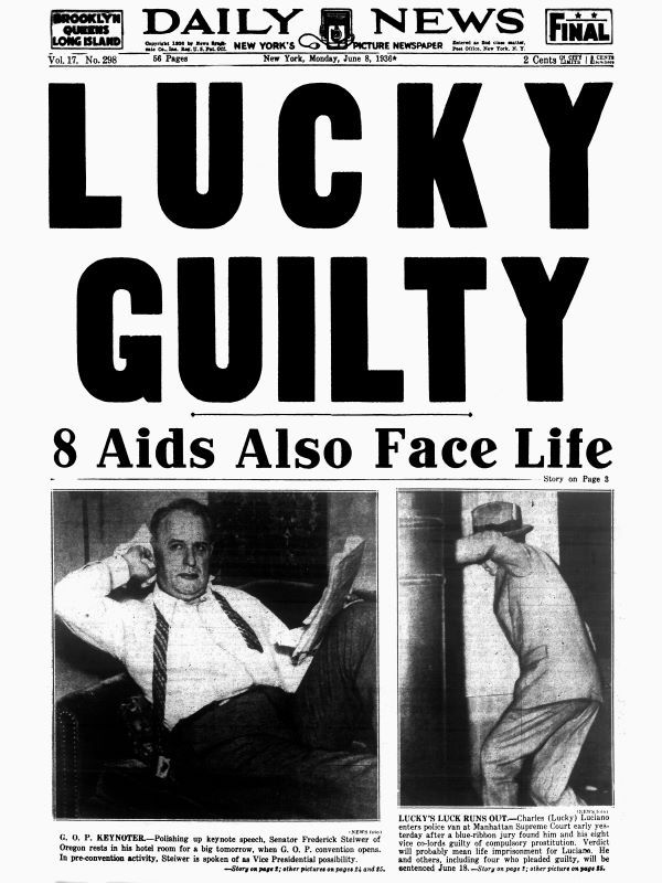 The wily Luciano remains infamous as a symbol of mob brutality and brilliance – it was he who first came up with the idea of improving the mob’s “efficiency” by reorganizing it to mimic a successful corporation. His conviction propelled his nemesis – special prosecutor Thomas E. Dewey – to fame: Dewey went on to become a three-term New York governor, and, very nearly, President of the United States.