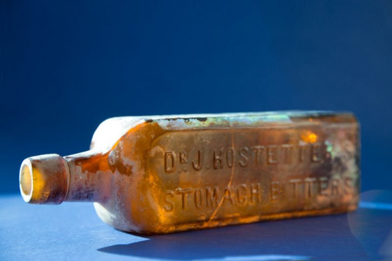 You can see some of the artifacts uncovered beneath 50 Bowery in a wooden, framed exhibition case along a wall. These objects include Dr. Hostetters Stomach Bitters (which 50 Boweryâs archaeological team, Chrysalis Archeological Consultants, found a recipe for and brewed), a pressure cooker lid, glass beer mug, clay smoking pipe, stoneware mug, and a tile that is a remnant of the Atlantic Beer Garden. The history of the site resonates ever greater with more Atlantic Garden memorabilia gathered by the property owner, including a mug and token.