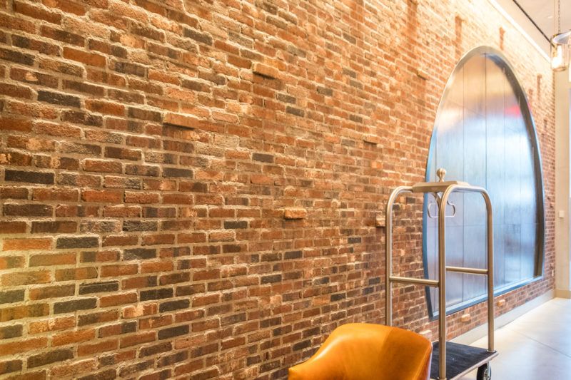 The exhibit also takes visitors back in time with its display of original bottles from the Olliffe Apothecary, which once stood nearby at 6 Bowery. Even the brick wall at the hotel lobby pays tribute to the Bowery’s history, with its protruding bricks from the basement of the Atlantic Garden, some of which was archaeologically recovered.
