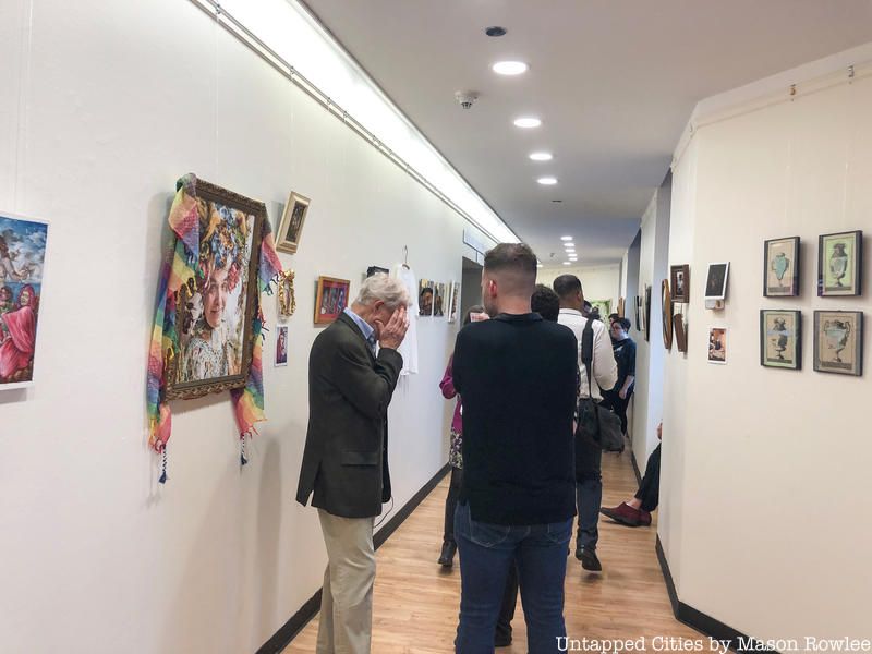 Additionally, the works of Johnathan Morpurgo, a founder of the Tahrir Scarf Organization were on display around the frames of many of the other artists’ works and the windowsills of the gallery. The Tahrir Scarf Organization, a non-profit which sells 32 different varieties of rainbow scarfs to help raise money for LGBTQ pride events, was founded by Morpurgo in 2013 when he noticed an absence of rainbow scarfs on the market.