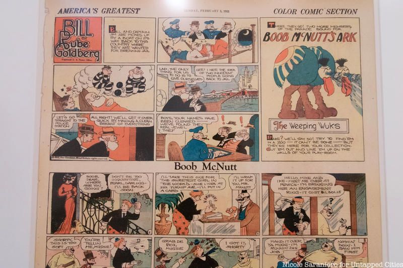 Even if you don’t know his name, you have likely seen a Rube Goldberg machine in a television commercial, cartoon or movie. The complicated mechanical systems are often made of everyday items cobbled together to make a contraption that completes an otherwise simple task. These machines first appeared in Goldberg’s comic invention drawings and have inspired countless imaginations since. In a new exhibit at the Queens Museum, The Art of Rube Goldberg, visitors can see 100 never-before-exhibited works of art from Goldberg’s prolific 72-year long career. Untapped Cities got to explore the exhibition with Jennifer George, Rube Goldberg’s granddaughter, who says that much of the collection was stored in her parent’s garage and under her bed, before being restored and put together for this travelling exhibition.