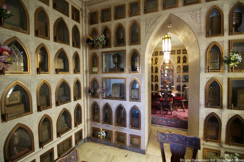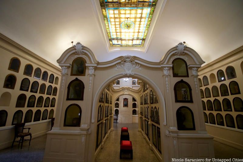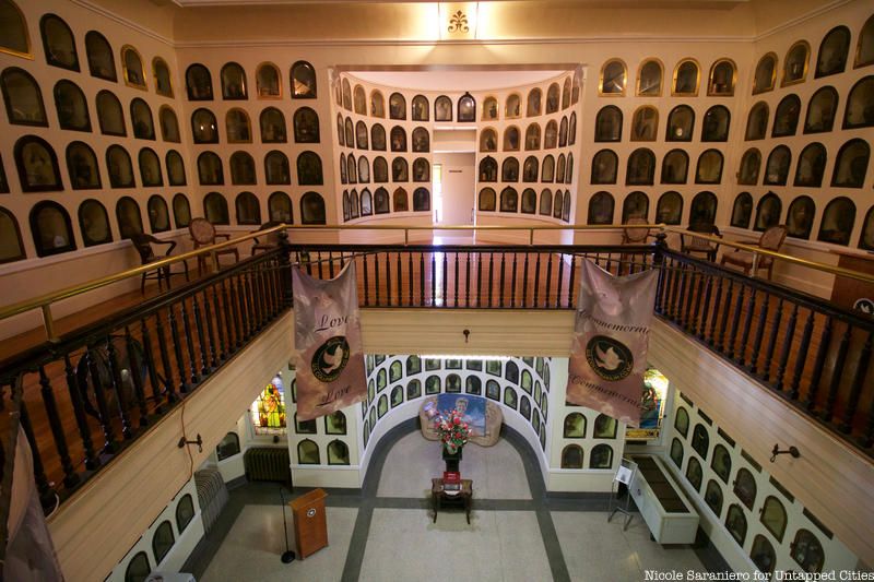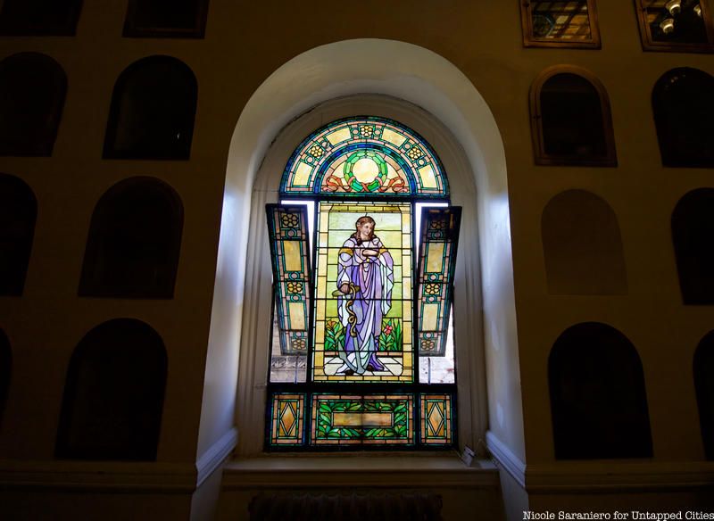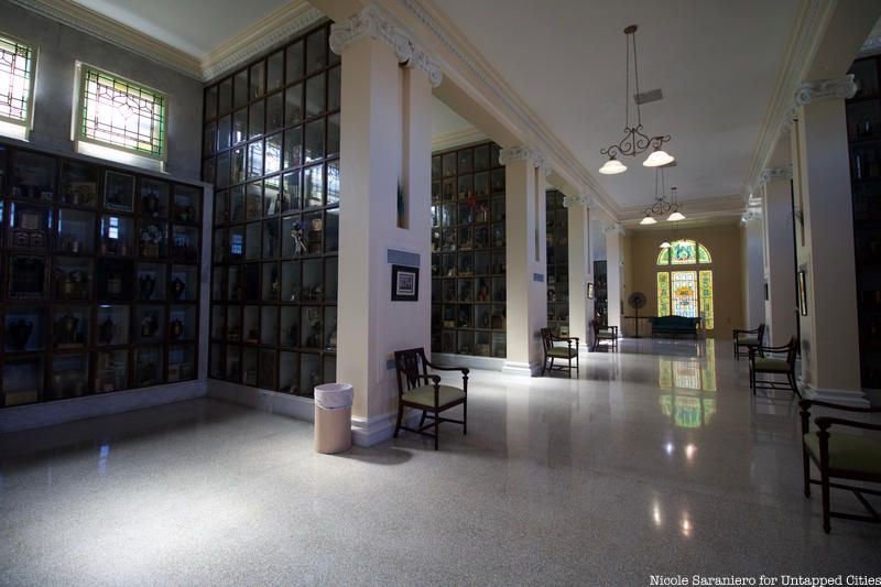 Untapped New York Insiders, got to explore this historic columbarium's many rooms of historic niches, classical architecture, and stunning stained and painted glass windows with J. P. DiTroia, the President of the U.S. Columbarium Company at Fresh Pond Crematory.