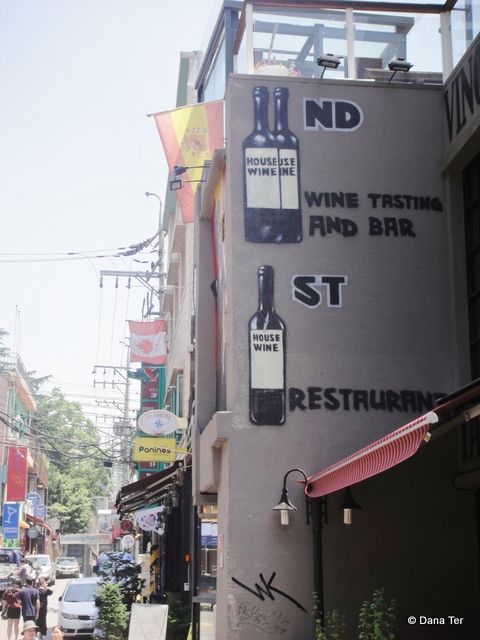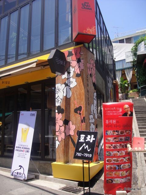 Down a winding road is a little French bistro inside a glasshouse rooftop next to a three-story high English pub with pink stained glass windows. Around the corner, a Thai-Chinese restaurant perched on a hill advertising Japanese beer beckons you to sample their Pad Thai, while the aroma of wanton noodles from a Hong Kong-owned noodle shop flirts with your olfactory senses. Further down the hill near the traffic by Itaewon Road is a small vendor-style shop which is hard to miss because of its lemon-colored walls. Here, they sell freshly squeezed sugar cane drinks guaranteed to cure the nastiest hangovers.