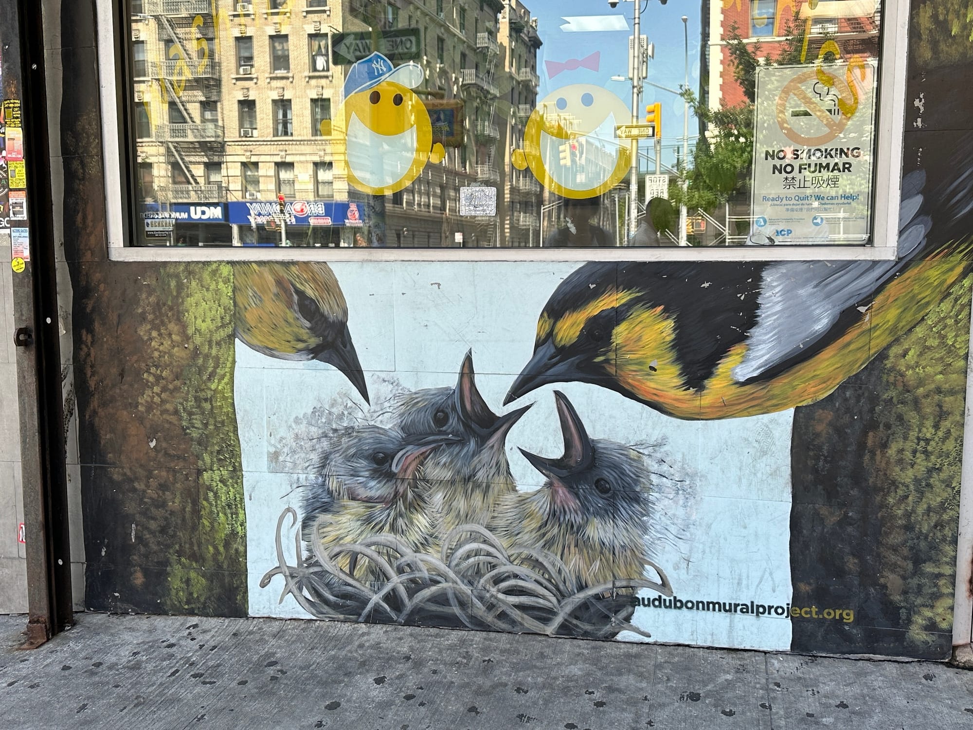Discover a diverse array of vibrant bird murals in surprising locations around Upper Manhattan, with insight from an experienced birdwatcher!