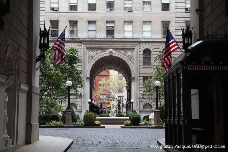 The Apthorp is one of many New York City buildings developed by the wealthy Astor family in the 19th and 20th centuries. Built between 1906 and 1908, the 12-story luxury apartment building has over 160 units and takes up an entire block. Over the years, it has been home to many celebrities including Cyndi Lauper, Rosie O’Donnell, Robert DeNiro, and Nora Ephron. One of the main attractions of the Apthorp is its giant inner courtyard that could be accessed by horse-drawn carriages via two archways that open to Broadway and West End Avenue.