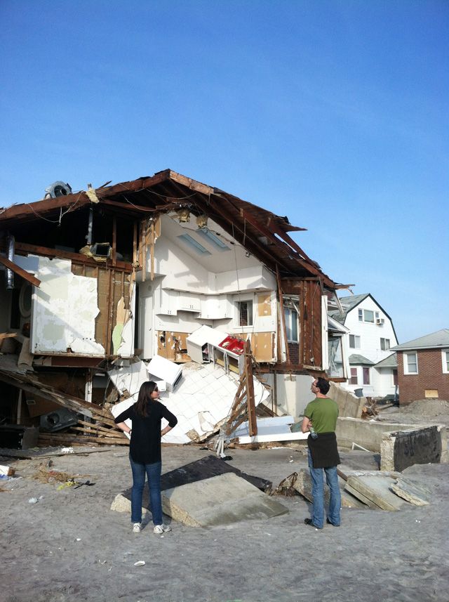 My first reaction was doubtful, but I wanted to get more information. Since I respected my potential collaborators, I opened myself to the current and flow of the Far Rockaway Redevelopment Fund. Our first order of business was to scout the Rockaways to understand the situation on the peninsula and gather ideas for materials and locations. The trip out proved to be a powerful mix of impressions. Certain parts were very visibly damaged: buildings lifted off of foundations and slammed into others, whole city blocks of houses razed to the ground, piles of rubble piled wherever possible, boats left on high ground far from their slips, the walls of beachfront properties licked clean from the structures exposing each floor of their dollhouse interiors.