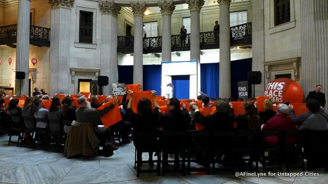 Those in attendance, waving #ThisPlaceMatters banners as a recommitment to preservation