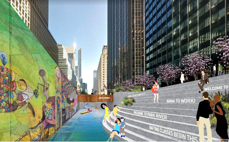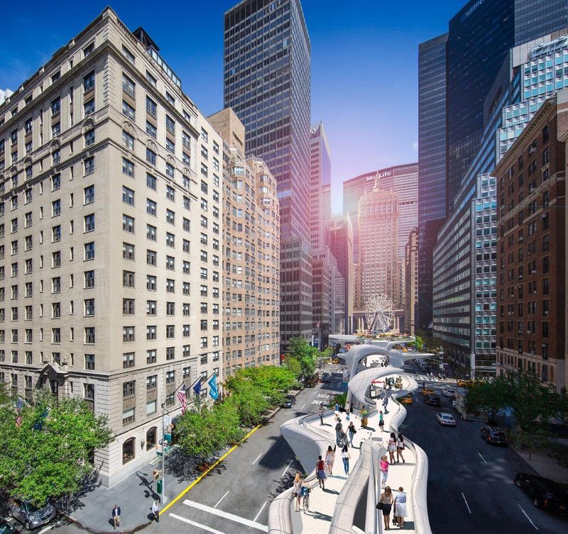 On Tuesday, Fisher Brothers unveiled 17 finalists for “Beyond the Centerline,” a design competition that invited participants to reimagine the traffic medians along Park Avenue between 46th and 57th Streets. Over 150 submissions were received, and the final proposals feature highly imaginative ideas, calling for the construction of floating gardens, an aquarium and even an Alpine mountain. The next step of the competition is to display these designs at Park Avenue Plaza (55 East 52nd Street) for public voting, which will take place from March 5 to March 9. Following that, a jury will ultimately select the $25,000 grand prize winner, and popular vote will determine a $5,000 prize winner. In the meantime, check out the unique ideas that have been conceptualized: