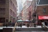 One of the Financial District’s dark secrets is that it was a major center of the slave trade. When Peter Stuyvesant became director general of New York, he realized that the fur trade wasn’t making any money and figured the real money was in the slave trade. At first, slaves were auctioned off right off the boats at the water’s edge, but then the slave market moved up to the edge of the wall.