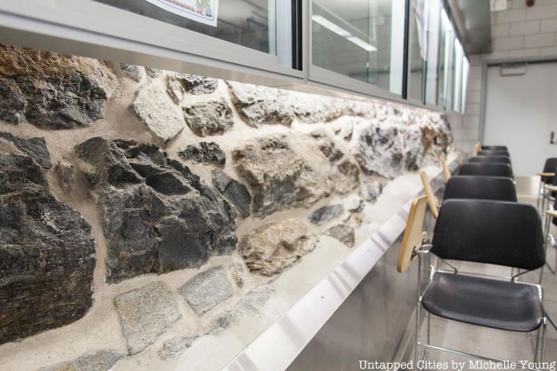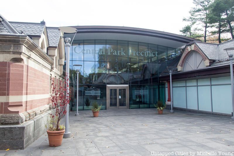 Along the east side of the Great Lawn, stones from a side wall can be seen poking out of the ground. There is even a rock wall inside the station’s conference room, part of an expansion of the police station that does a good job design-wise of blending old and new. The main entrance hall of the precinct is a glass canopy that bridges between original structures of Central Park.