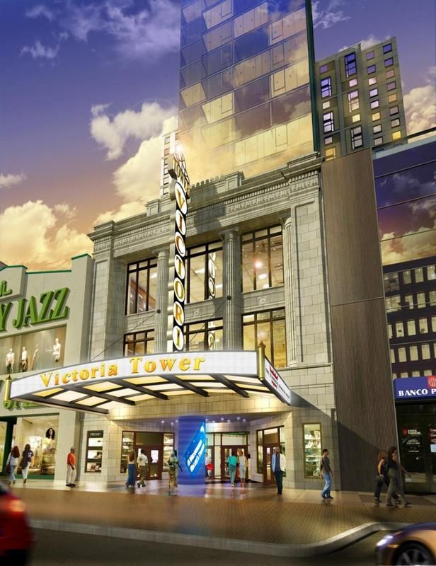 Rendering of the renovated Victoria Theatre space, with 26 story tower