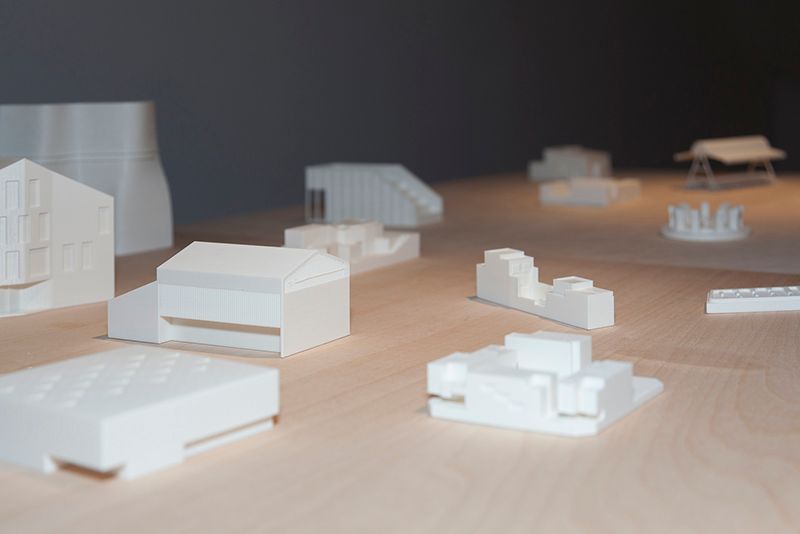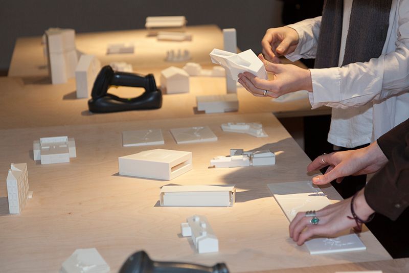 Complimenting the audiovisual commentary are architectural models presented neatly across tables situated on the side of the room. This is, perhaps, one of the most entertaining parts of the exhibition simply because it invites viewers to actually hold 3D reproductions of each project. Instead of presenting architectural plans, which are difficult to read and understand, these models are fitted with barcodes, which people can scan to bring up pertinent information about the designs onto a TV monitor.