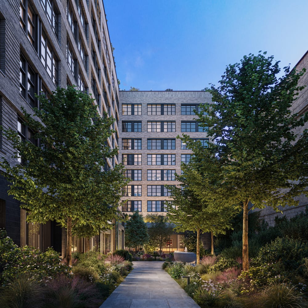 This 350-unit mixed-use development—with 88 affordable housing units—was designed by New York firm SLCE Architects and developed in partnership with Brooklyn-based developer Avery Hall is now open for leasing. Its brick facade and large black-framed windows pay homage to the industrial aesthetic of the neighborhood's historic warehouses and factory buildings. Lush courtyards and gardens designed by Steven Dubner Landscaping add a touch of greenery, making the development feel both inviting and peaceful.