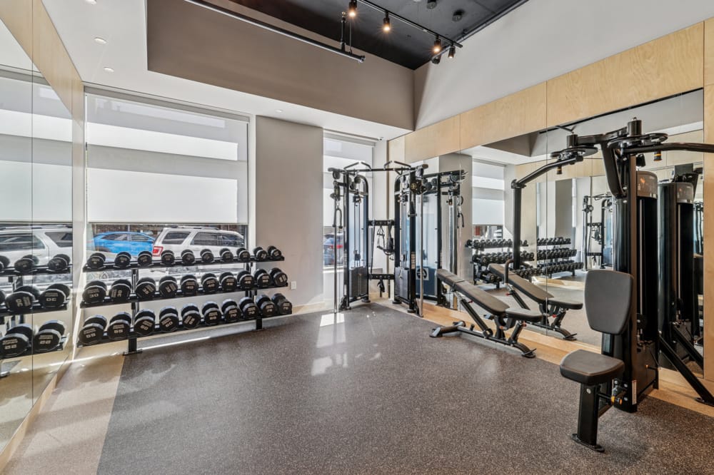 The comfortable living spaces are complemented by 25,000 square feet of curated amenities. Spread out over three floors, residents will find a pet wash station, a state-of-the-art fitness center with a Pilates studio, a golf simulator room, and a serene interior courtyard where tenants can find a quiet escape from the city bustle.