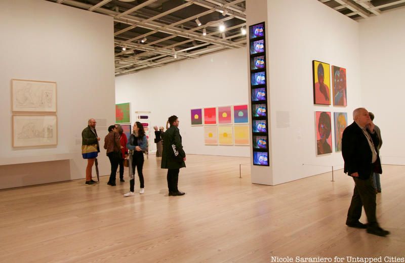 The exhibition is broken up into three parts spanning three different levels of the museum. The majority of the exhibition is housed on the fifth floor where works created by Warhol starting from his time as a commercial illustrator on Madison Avenue in the 1950s up until his death in 1987 take up the entire floor. On the third floor you will find more of Warhol’s prints along with a row of television sets screening a selection of his experimental works from the 1960s through the 1980s. The museum will run an accompanying film program that will screen Warhol’s films in their original 16mm format. The films in the program are curated by themes like Commercial/Commodity, Hollywood Stars/Hollywood Types, and Queer Performativity. The first floor gallery contains three walls covered floor to ceiling in commissioned portraits created by Warhol between 1968 to 1987. Commissioned portraits made up Warhol’s largest body of work.