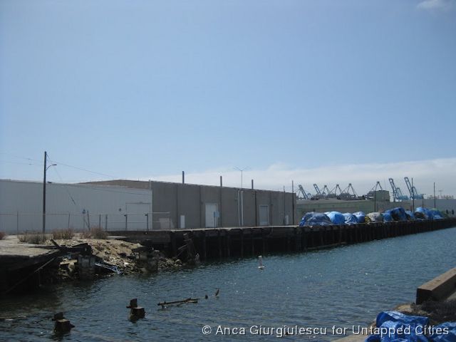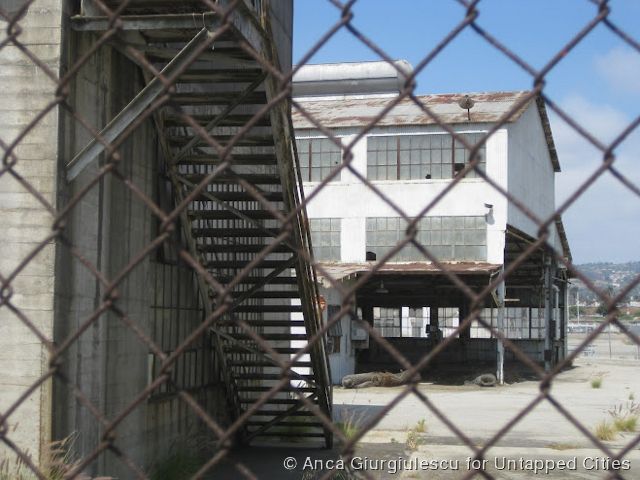 View of abandoned and underutilized buildings in Southwest Marine complex, former shipbuilding site.