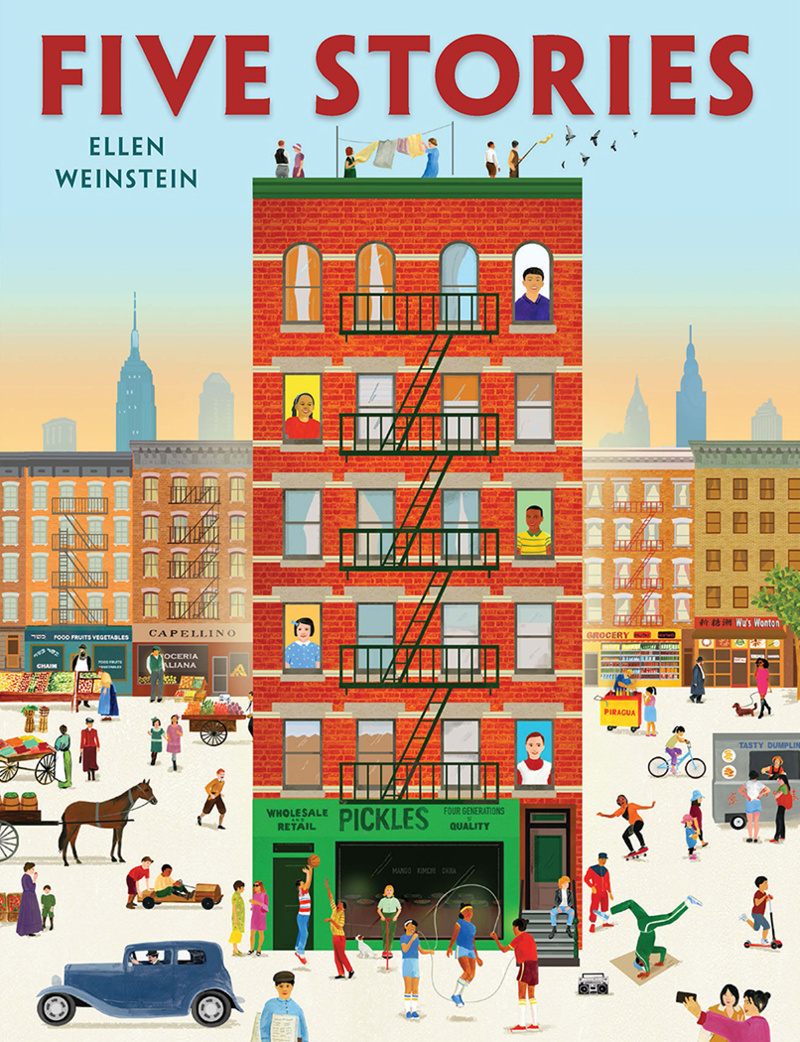 “Buildings are like people: each one has a story,” writes illustrator, author, and Lower East Side resident Ellen Weinstein. In her delightfully illustrated new picture book, Five Stories, Weinstein introduces the reader to five children from different cultural backgrounds, each occupying a different floor of the same tenement on Hester Street. As the reader meets each family, the timeline of the story progresses from 1914 to the present day. Set over the course of a century, the illustrations show an ever-changing neighborhood, one Weinstein knows very well. On May 22nd, join Weinstein for a free virtual talk where she’ll share a behind-the-scenes look into the making of Five Stories and discuss how her own family history inspired the book!