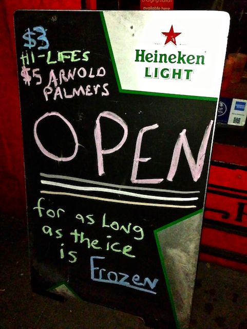 When we walked in, we were immediately greeted by manager Devin Vilardi, who seemed to be completely in his element. He immediately informed us of the specials for the night – $3 Miller High Life bottles, and $5 Arnold Palmer drinks. A backpack with a built-in speaker played Devin’s hand crafted Spotify playlist. And a waning supply of ice kept everything cold.