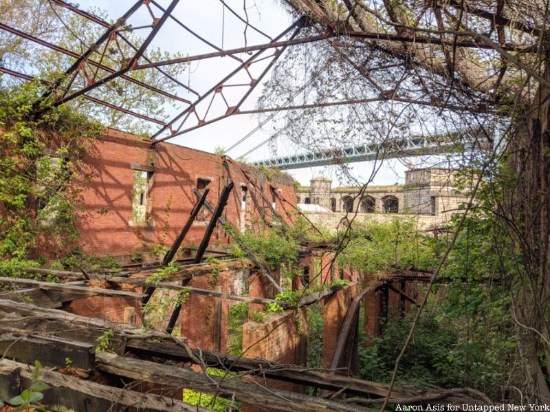 The Battery Weed, an abandoned structure protecting the Narrows, is photogenic against the Brooklyn shoreline and Manhattan skyline. Visitors travel to Staten Island for these views — and haunted experiences.