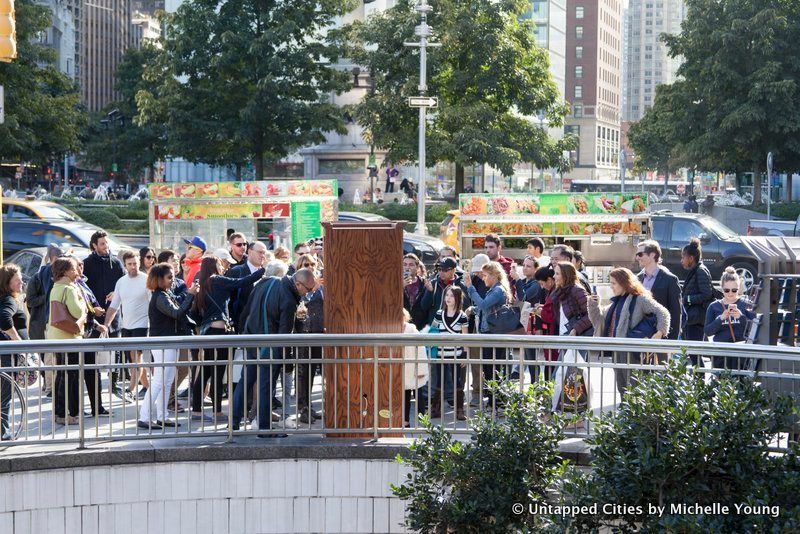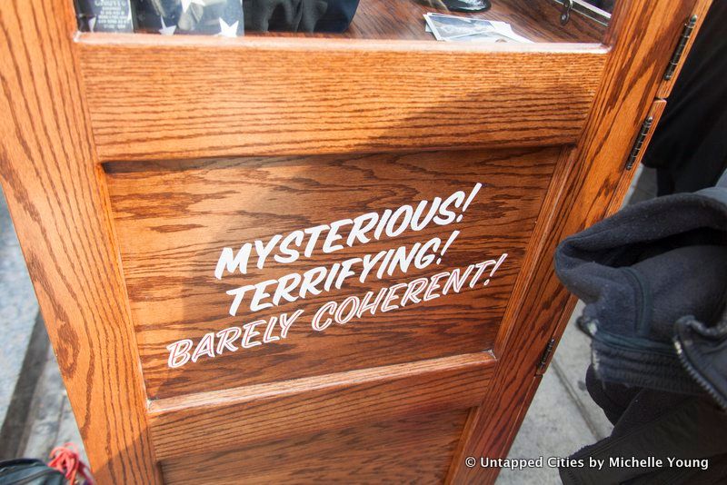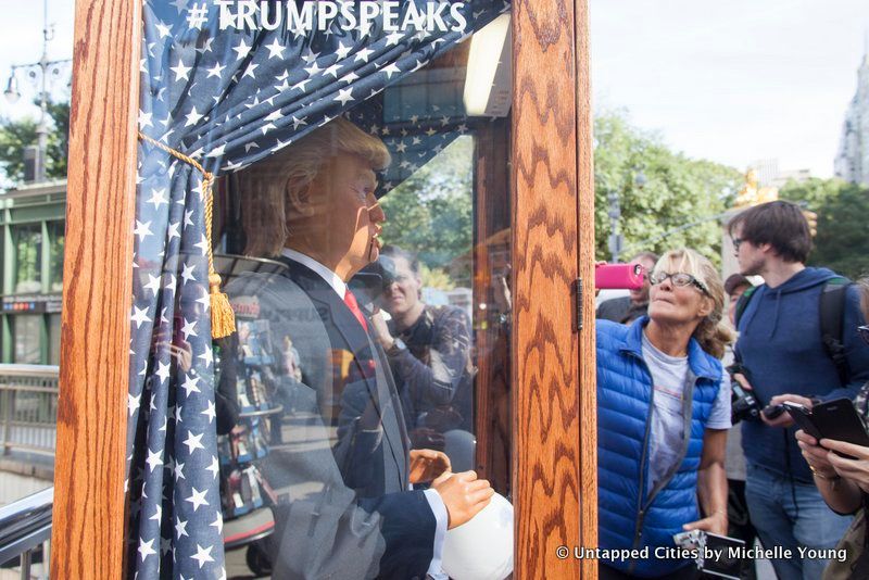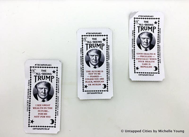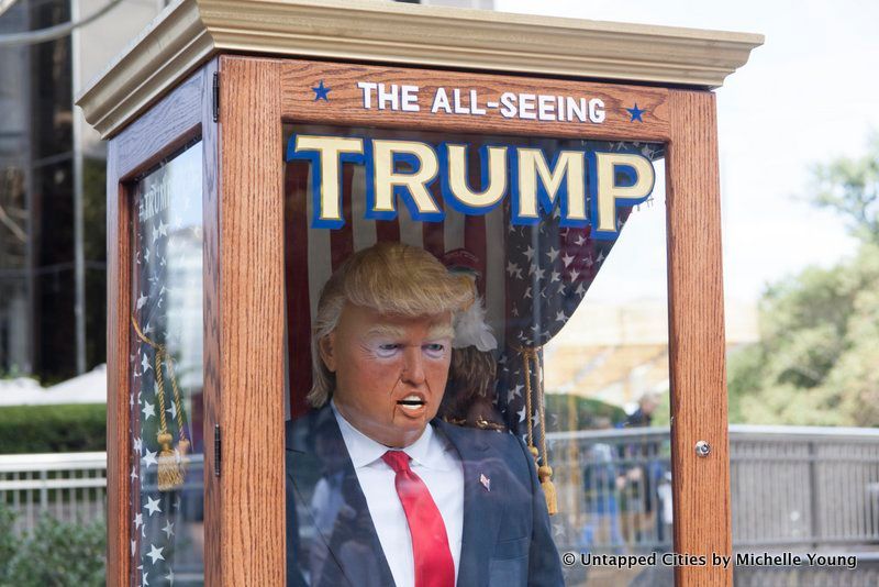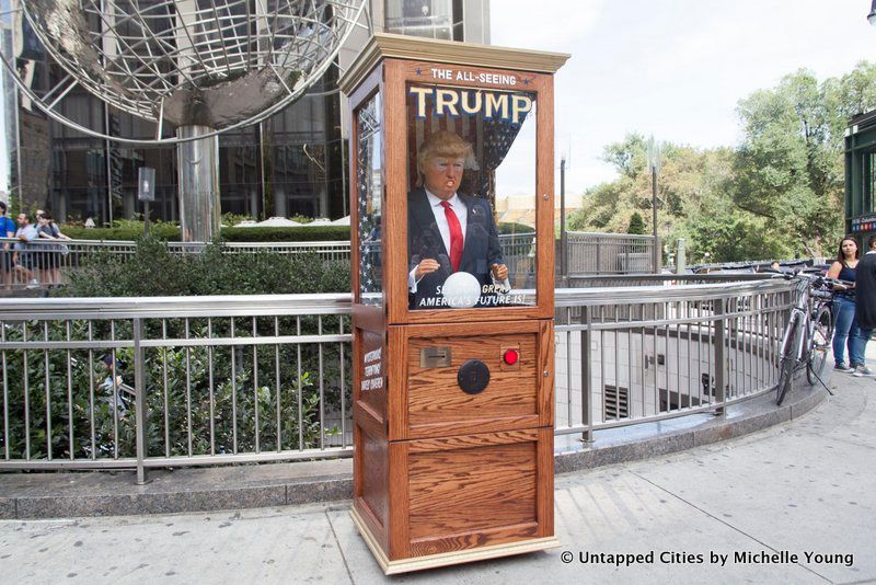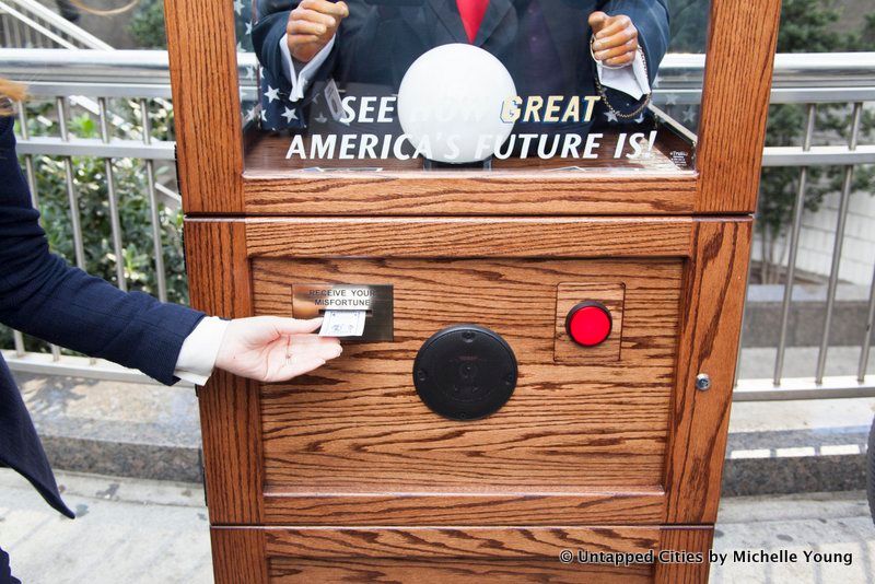Then yesterday afternoon, Untapped Cities received a curious message from a non-press partner of ours: “A friend of mine from work did this yesterday,” with a link to the news coverage on the Trump Zoltar. Speaking to one of the artists through this proxy, they informed us that the Zoltar would be moving around indefinitely. As of 5:36 pm yesterday, they told us “Planned Parenthood just happened not sure what’s next.” They noted that last night would be dedicated to editing a video (now below) and that they planned to become “more friendly with press tomorrow.”