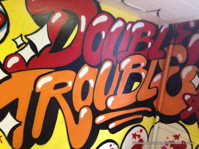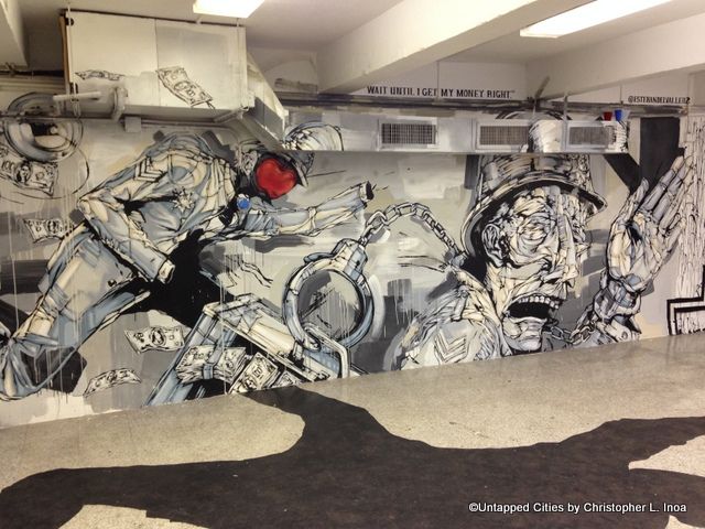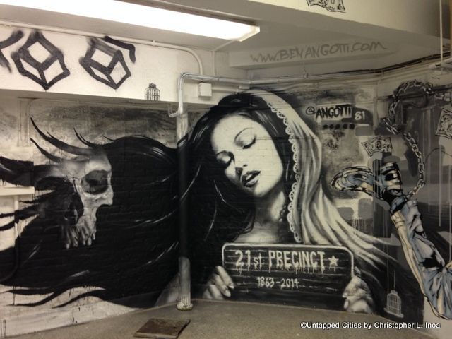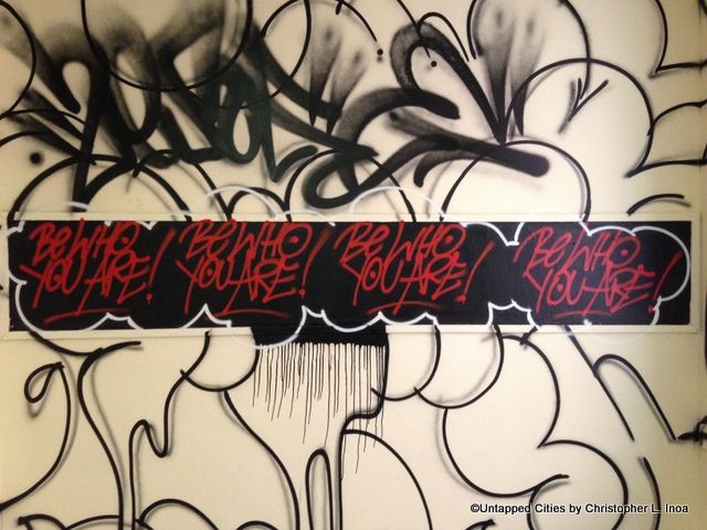 This past Saturday outlaws and vandals partied inside a former police station in Gramercy. Robert Aloia along with Outlaw Arts, VNA Magazine, street artist Beau, Todd Masters, the NY st.Gallery and the real estate and business financial brokerage firm Suzuki Capital LLC, came together to pull off one of the most massive street art shows of the year. Almost 70 different artists brought their respective street art and graffiti styles to 327 E 22nd. Street, in a show that gave some of the artists free rein on rooms formerly used to hold criminals and teenage runaways.
