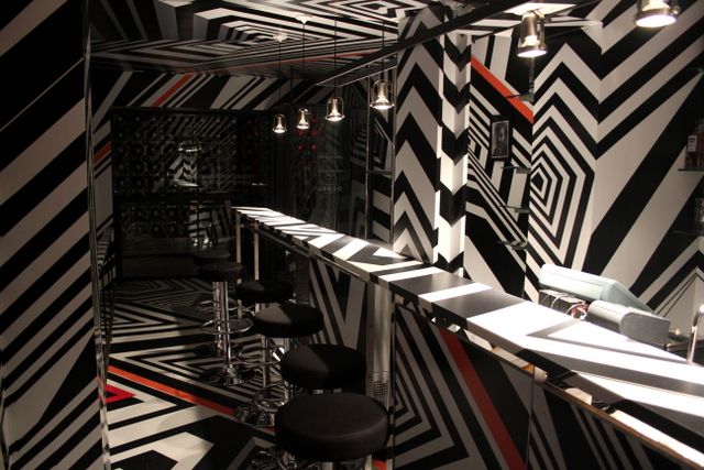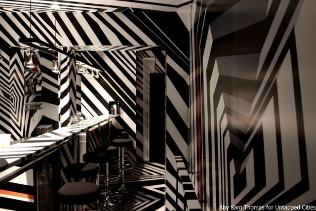 We all have our favorite watering holes, but German artist Tobias Rehberger seems to have taken his fascination with Frankfurt’s Bar Oppenheimer to a whole new level: he has created an exact replica of the bar right here in New York City at Chelsea’s Hotel Americano. Located in the hotel’s basement, one has to navigate a kind of maze to get to this bar, and once you get there, prepare to be bowled over (and maybe even a little disoriented) with the dazzling psychedelic design of this space.