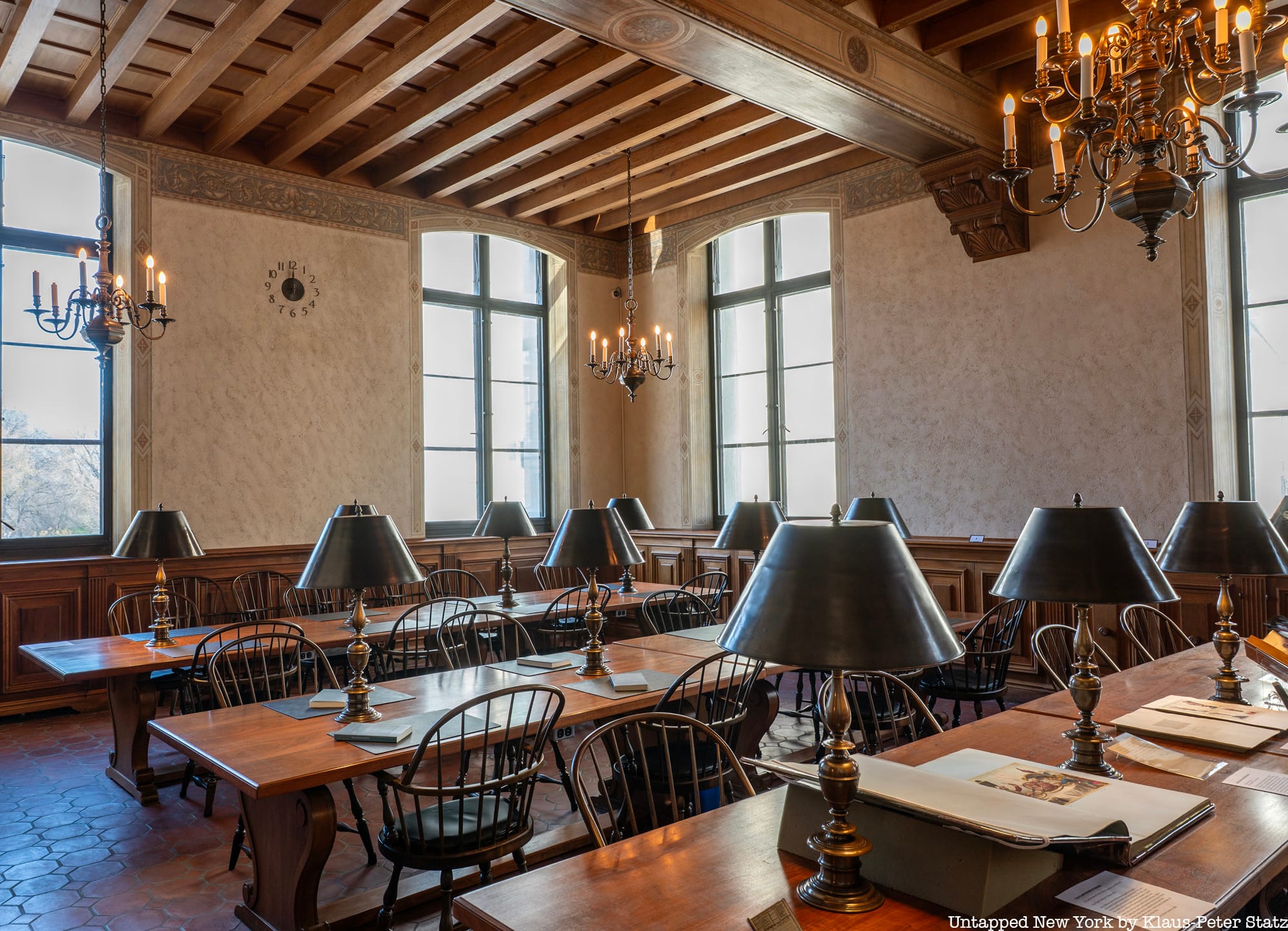 The second-floor galleries focus on the special collecting interests of Frick family members and significant gifts that have been made to the museum. In Henry Clay Frick's original bedroom, now called the Walnut Room, a selection of portraits are on view. In his daughter Helen's bedroom, her contributions to the institution and her love for early Italian Renaissance paintings are acknowledged by the display of works by Cimabue, Piero della Francesca, and Paolo Veneziano. Additional collections now on permanent display include gifts of rare portrait medals, French faience ceramics, porcelain, and clocks and watches.
