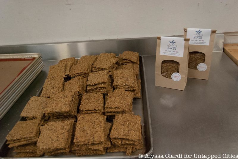 Bourbon bakes her crispbread in an industrial style kitchen in Brooklyn, but her product is available at stores all across the city as well as online.