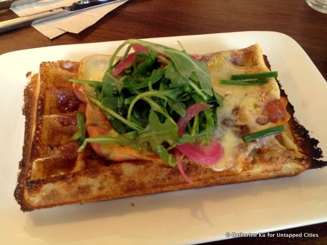 The sit-down location serves an expanded menu of savory items like the Oh Oh Serrano wafel.