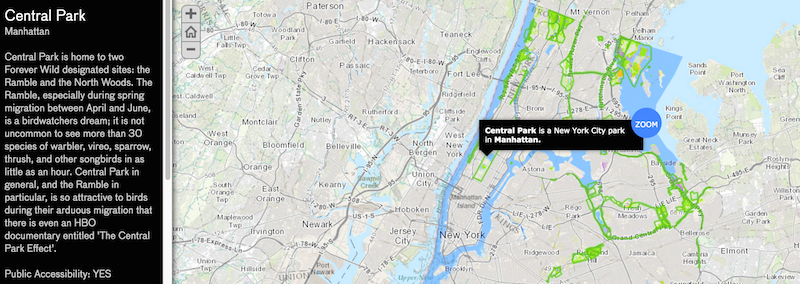 This enables any adventure seeker to easily look up information about his or her favorite New York City parks. Take for instance Central Park: it is almost a right of passage to visit this famous area. But even the seasoned New Yorker may not have known that it is filled with “more than 30 species of warbler, vireo, sparrow, thrush and other songbirds,” according to the map.