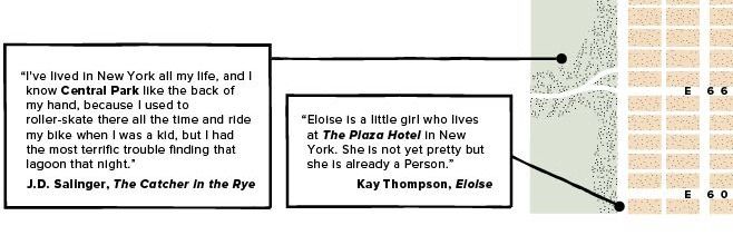 No NYC literary map would be complete without reference to Holden Caulfield’s jaunts around Manhattan in J.D. Salinger’s masterpiece The Catcher in the Rye. The Plaza Hotel is also not forgotten, where Kay Thompson’s beloved children’s book character Eloise lived on the top floor.