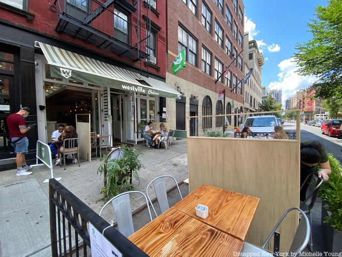 Here are some images of the outdoor seating we’ve come across in New York City in recent weeks. We’ve been impressed by the creativity of many restaurants and bars, adding umbrellas, greenery, and dividers.