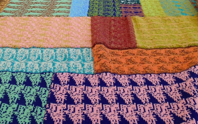 To create this fourteen-foot map, Santa used a 36x12st knitting machine which reads a punch card with a pattern on it: the map for the map. For the pattern, she used traced screenshots of Google maps and then combined them with the memories that altered her personal experience of the city: “Like one time I walked all the way down to Bowling Green and couldn’t remember the way home. I sat in this triangle shaped grassy park area which is actually pretty small on the scale of the park map, but that shape makes up the pattern of the lower end of Manhattan.”