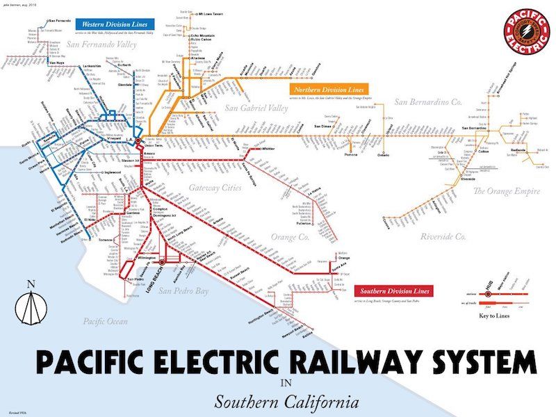 Los Angeles Pacific Electric Railway streetcar map print, 1926. Courtesy Jake Berman.