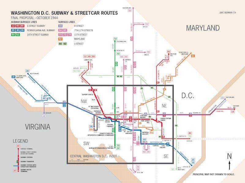 Washington, DC proposed subway system map, October 1944. Courtesy Jake Berman.