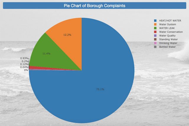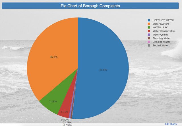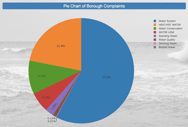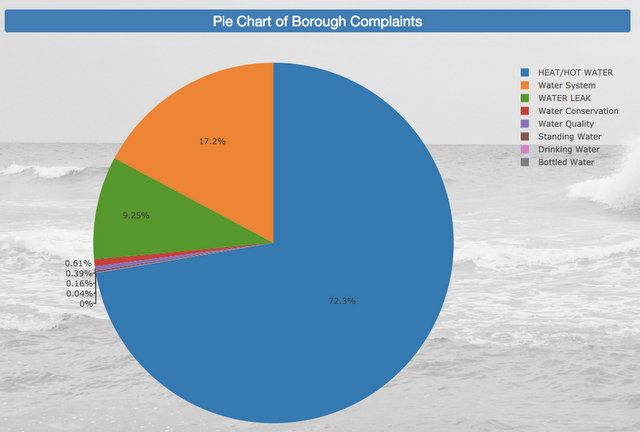 In Queens, water leaks had a lower incidence but water system complaints took a much larger share of the pie as well as complaints about water conservation: